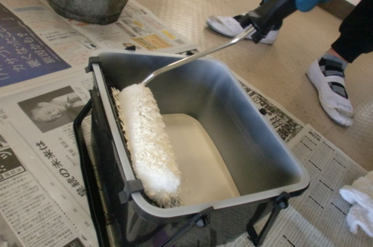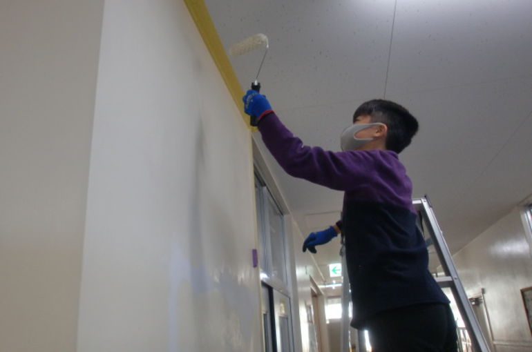 ウチの小学校6年生の長男が卒業記念イベントで、学校内の傷んだ壁などを塗装する事になったと聞いて。これは塗装屋の親父としては是非とも何か協力したいと思い、塗料と塗装道具を提供させて頂きました。